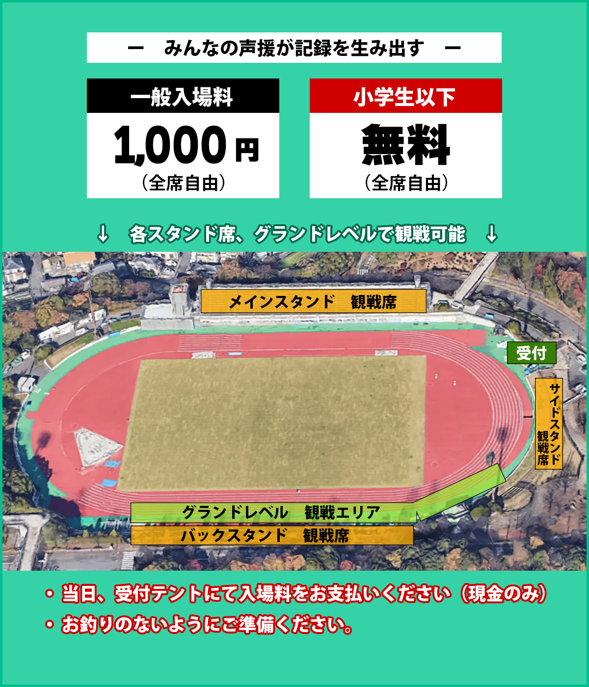 ・チケット販売場所:東門(100mスタート地点側)